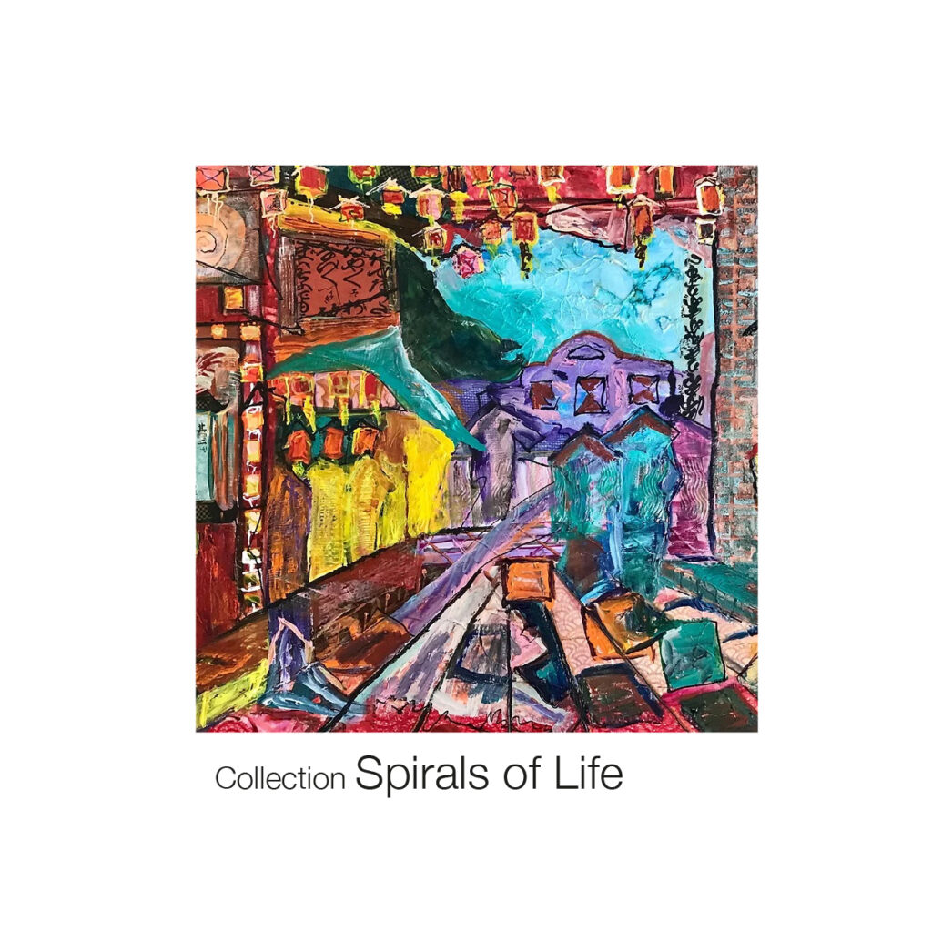 - This series “Spirals of Life” is about identity, perception but at the same time it is also about color, form and space.They are paintings with Acrylic & Mixed Media. Textures are used as tools. The thought process is similar to my life experience with bits and pieces of information, It all becomes part of my narrative. I want my work to be discover little by little, there are many symbols that hide among the layers and you can find them in all of my paintings, they all have a common thread, one that I will not reveal.At the same time it honors my favorite artist Hunterwaser, a friend gave a calendar with his work and it totally transform my and my vision on how I saw art.