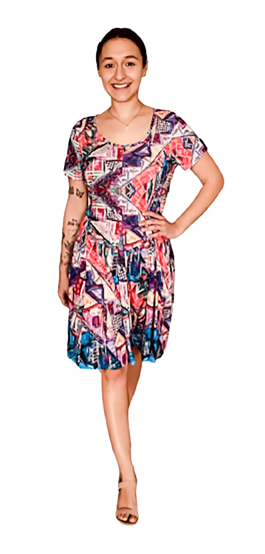 A voluminous, customizable skirt with a scoop neckline and princess seam bodice dress. The dress can be tied up into a bubble dress or worn loose for a longer dress.
